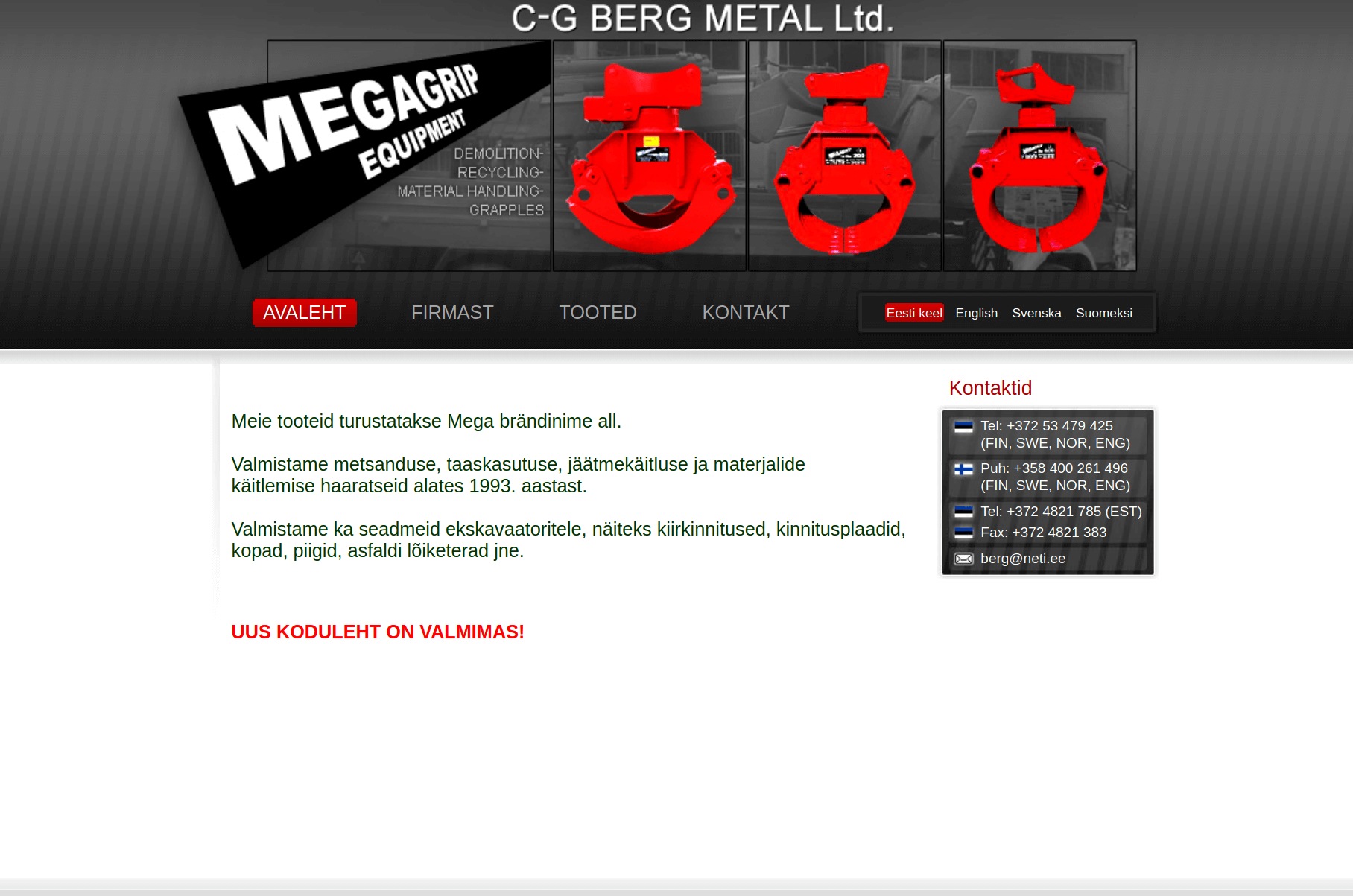 Meil on hea meel teatada, et alates septembrist 2020 on Berg Metal'i ja Mega brändi tootja ja turustaja Pomemet OÜ.Koduleht on uuendamisel. Edaspidi leiate kõik tooted pmc.ee lehelt.